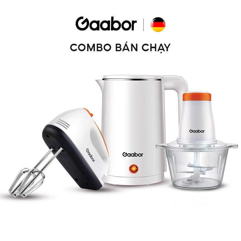 Combo Ấm bình đun siêu tốc - Máy đánh trứng cầm tay - Máy xay thịt, thực phẩm đa năng - GAABOR