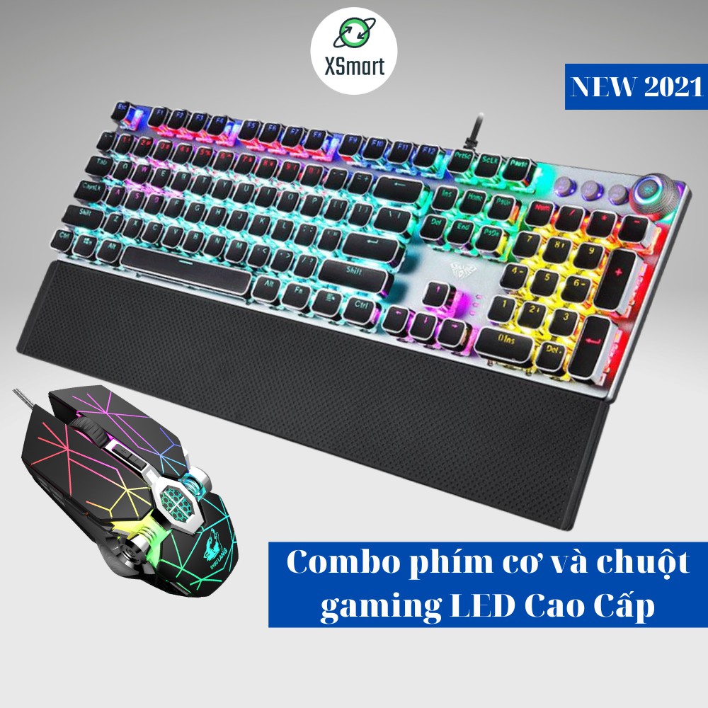 Bộ combo bàn phím cơ và chuột chơi game, keyboard có hơn 20 chế độ LED khác nhau kiểu dáng gaming FZ508+V8