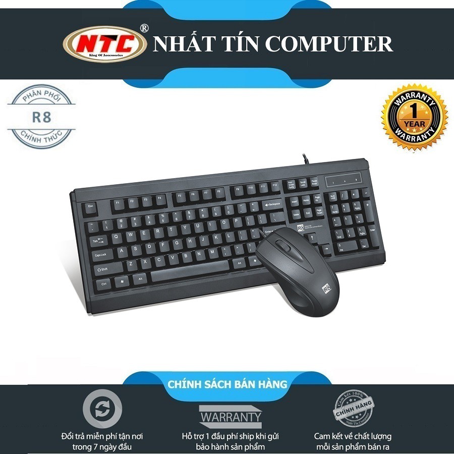 Combo bàn phím và chuột văn phòng có dây R8 1907 chống nước chống nhiệt (Đen) - Hãng phân phối chính thứcBàn phím: Khắc laser chống mờ