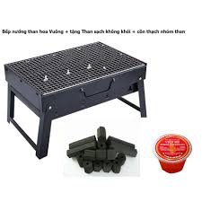 Giới thiệu Combo Bếp Nướng Than Hoa Vuông + 1Kg Than Sạch Không Khói + 1 Hộp Cồn Thạch Nhóm Than