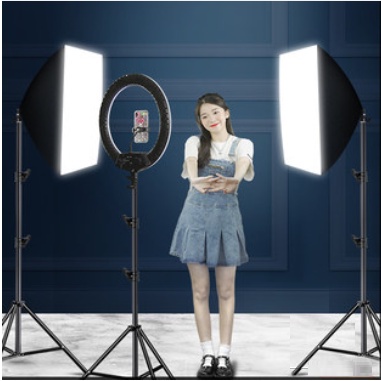 Combo Bộ 2 Đèn Softbox + Đèn Led Ring Livestream HQ21, Thiết Bị Livestream Chuyên Nghiệp