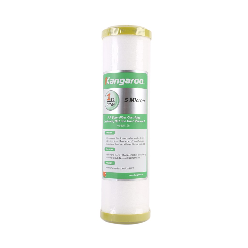 🌸 Lõi lọc nước Kangaroo số 1.1 Sợi PP tạo khe hở 5 Micron,- Nguyên liệu: Sợi PP có khe lọc 5 micron- Chức năng: Loại bỏ bùn đất, rỉ sét, các loại tạp chất thô, kim loại nặng ... có kích thước > 5 micron
