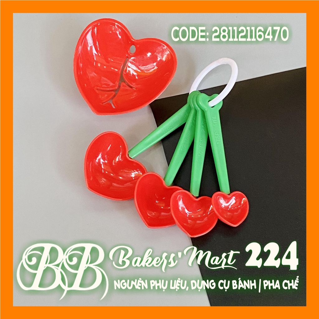 Nhà cửa & Đời sống > Dụng cụ nhà bếp > Dụng cụ đo lường || Combo bộ 5 món: 1 tách lòng trứng, 4 muỗng đong TRÁI TIM ĐỎ cán xanh lá (KT0545)Còn hàng