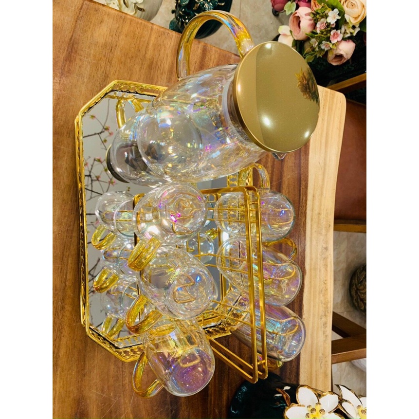 Nhà cửa & Đời sống > Bộ đồ bàn ăn > Bình nước & phụ kiện || Combo bộ bình đựng nước thủy tinh cao cấp 6 cốc kèm khay và giá úp mạ vàngCòn hàng