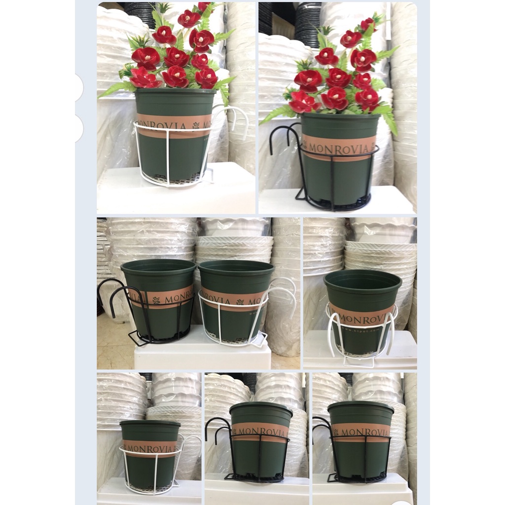 Combo Bộ Chậu MONROVIA hàng Nhập Khẩu TQ, Chậu gallon màu xanh + Kèm Đĩa Lót (3-size)