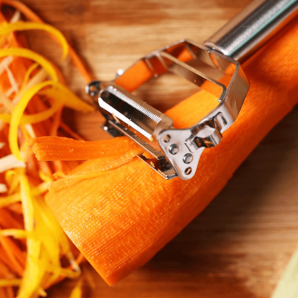 - Thiết kế lưỡi kép độc đáo vừa giúp bào vỏ rau củ nhanh chóng vừa giải quyết các công việc cắt sợi thực phẩm nhanh gấp nhiều lần so với phương pháp cắt sợi bằng dao, thớt thông thường.