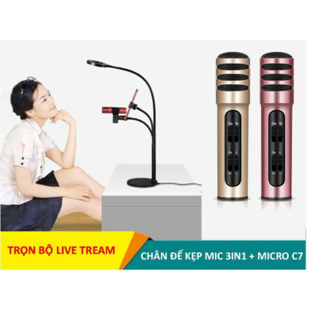 Thiết Bị Âm Thanh > Micro thu âm || [Combo] Bộ hát karaoke, live tream trên điện thoại ( Chân đế kẹp mic 3in1 có đèn Led + Micro C7) 2 mónCòn hàng