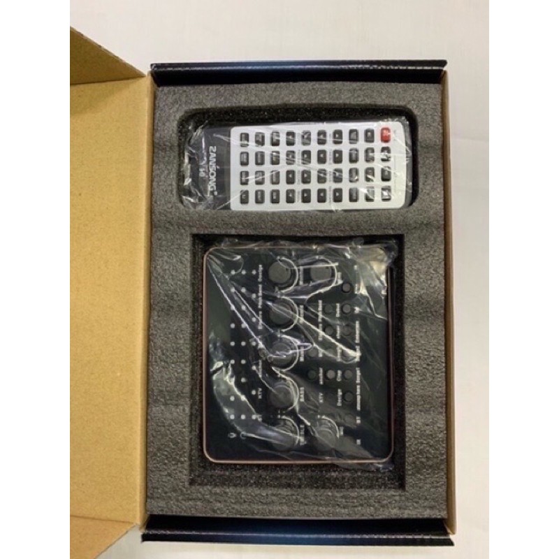 sound card v10 Bluetooth có Remote điều khiển từ xa, các bạn có thể điều chỉnh sound card ngay trên điều khiển mà không cần động chạm gì tới sound card rất tiện lợi.