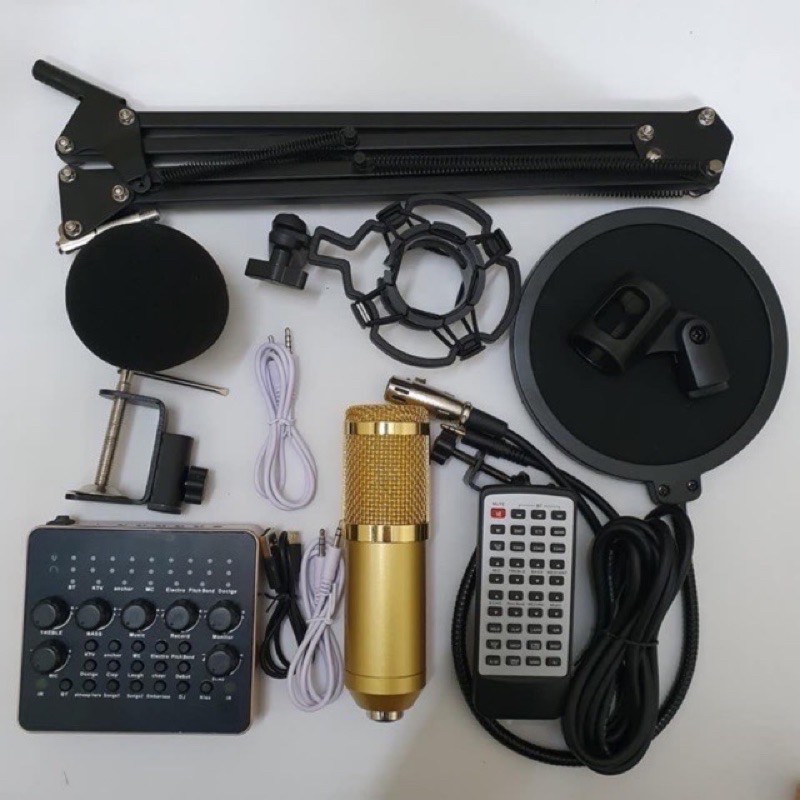 Thiết Bị Âm Thanh > Micro thu âm || Combo bộ hát livestream thu âm mic BM900 + sound card V10 + kẹp bàn màng lọc âm đầy đủ dây kết nốiCòn hàng