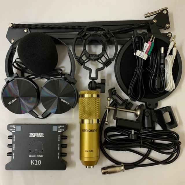Thiết Bị Âm Thanh > Micro thu âm || COMBO bộ mic livestream hát karaoke BM900, card xox k10, dây livestream loại tốt, chân kẹp míc, màng lọc âm tai nghe 450Còn hàng