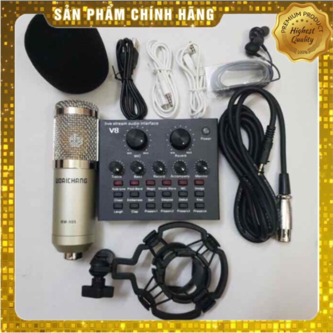 Giới thiệu [Mã ELHACE giảm 4% đơn 300K] Combo bộ Mic Thu Âm, Hát Karaoke,Livestream online cực hay(Trọn Bộ Souncard V8,Bm900)