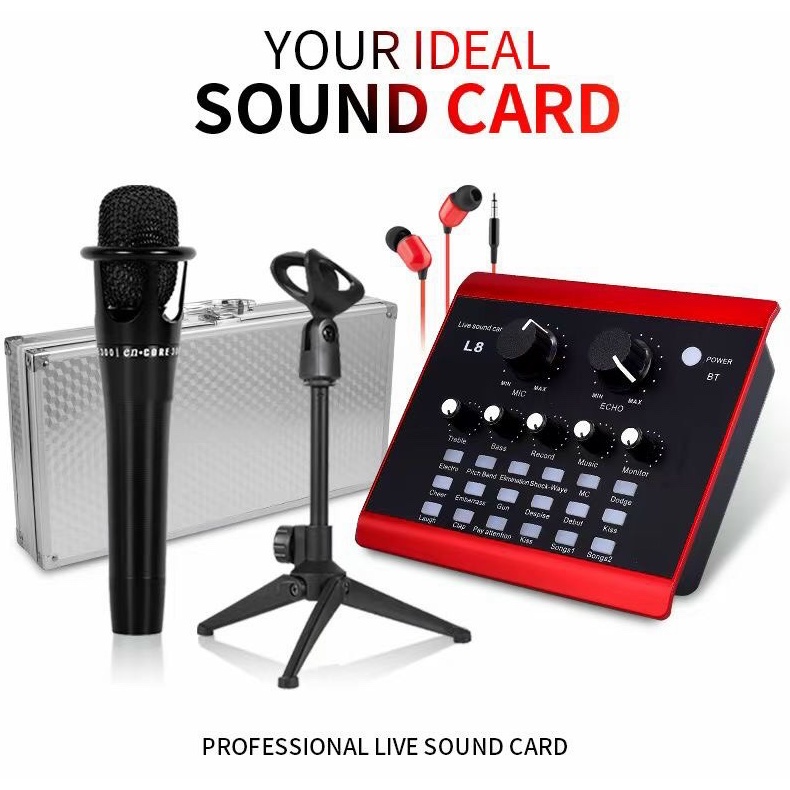 Combo Bộ mic thu âm và Sound Card L8 chuyên dụng hát livestream với đầy đủ chức năng chỉnh giọng âm thanh