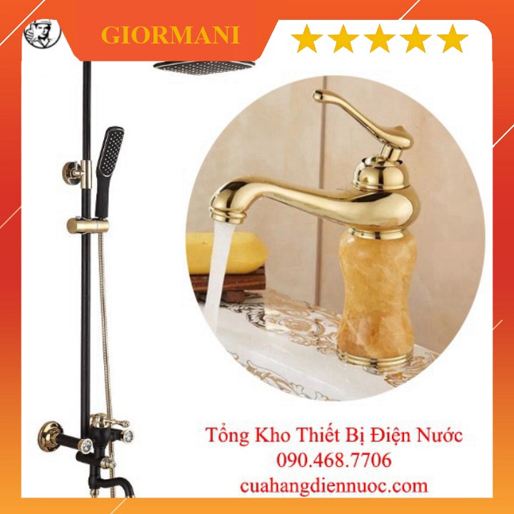 Combo bộ sen cây tắm đính đá kèm vòi chậu lavabo vàng đen cao cấp SC08-SNL23
