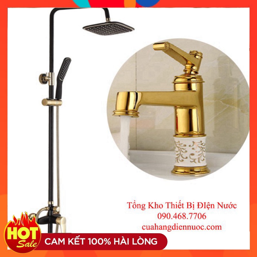 Nhà cửa & Đời sống > Đồ dùng phòng tắm > Vòi sen & vòi xịt vệ sinh || Combo bộ sen cây tắm GIORMANI kèm vòi chậu lavabo vang đen cao cấp SC09-SNL23Còn hàng