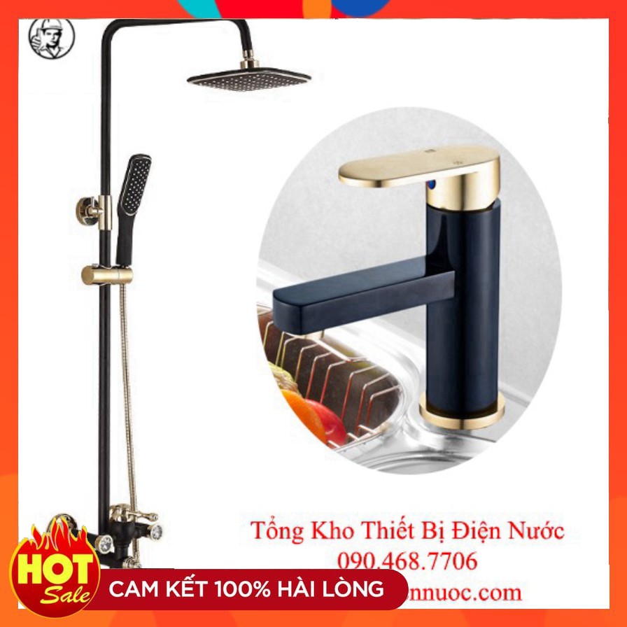 Nhà cửa & Đời sống > Đồ dùng phòng tắm > Vòi sen & vòi xịt vệ sinh || Combo bộ sen cây tắm GIORMANI đính đá kèm vòi chậu lavabo vàng đen cao cấp SC08-SNL23Còn hàng