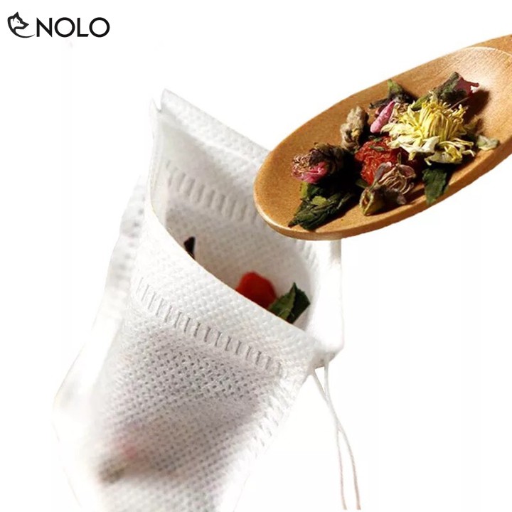 Xung quanh mép túi được hàn nhiệt chắc chắn. Ngoài ra, túi có thiết kế thêm dây buộc, giúp giữ trà hoặc gia vị bên trong không bị đổ ra ngoài trong quá trình chế biến