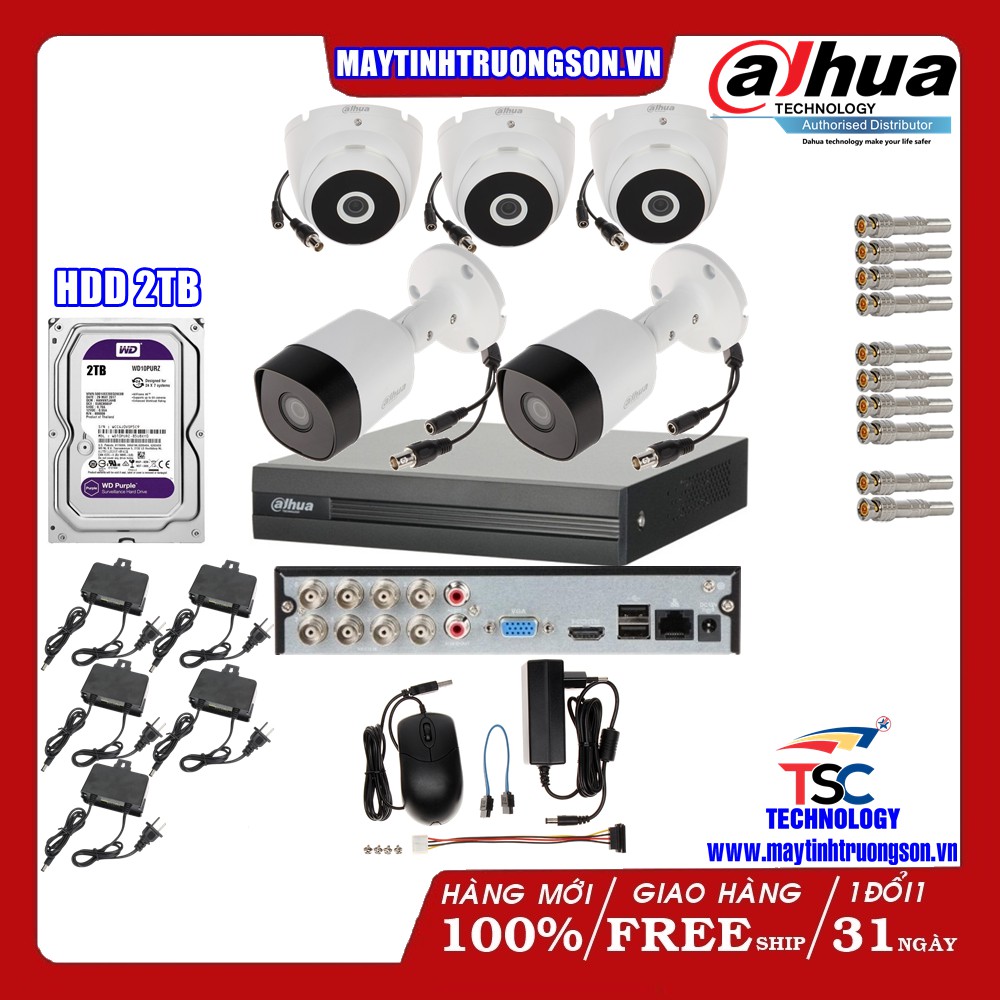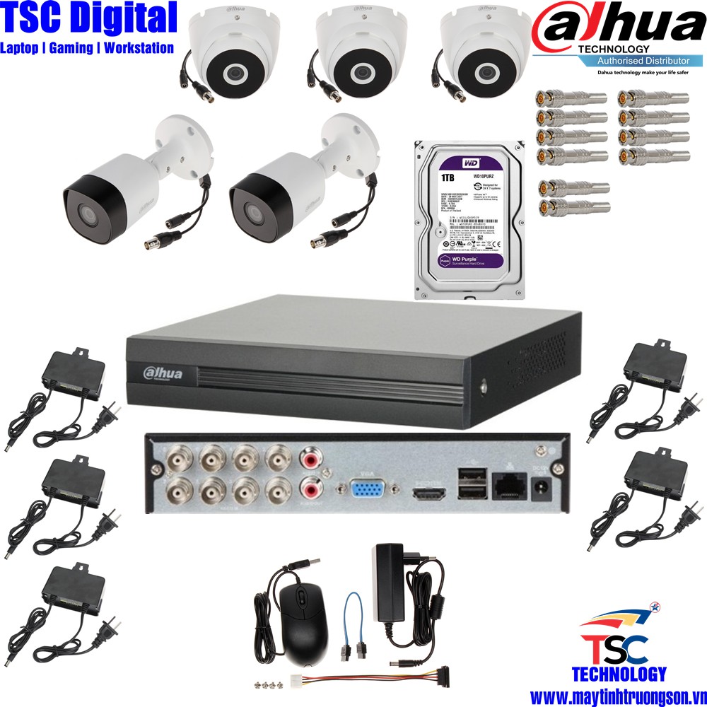Combo Camera TSCD82T3D DAHUA 5 Mắt Cam 2M Dahua DSS | Kèm Ổ Cứng Lưu Trữ 2Tb/ 2000Gb