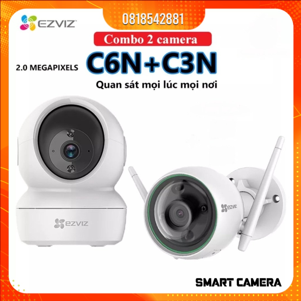 Combo Camera Wifi EZVIZ C6N 1080P (Trong nhà) + C3N 1080P (Ngoài trời) , AI , màu ban đêm - Chính hãng