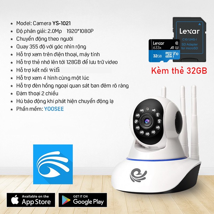 Cameras & Flycam > Camera giám sát > Camera giám sát kết nối internet || Combo Camera Yoosee 3 râu + Thẻ nhớ hãng 32Gb | 64GbCòn hàng