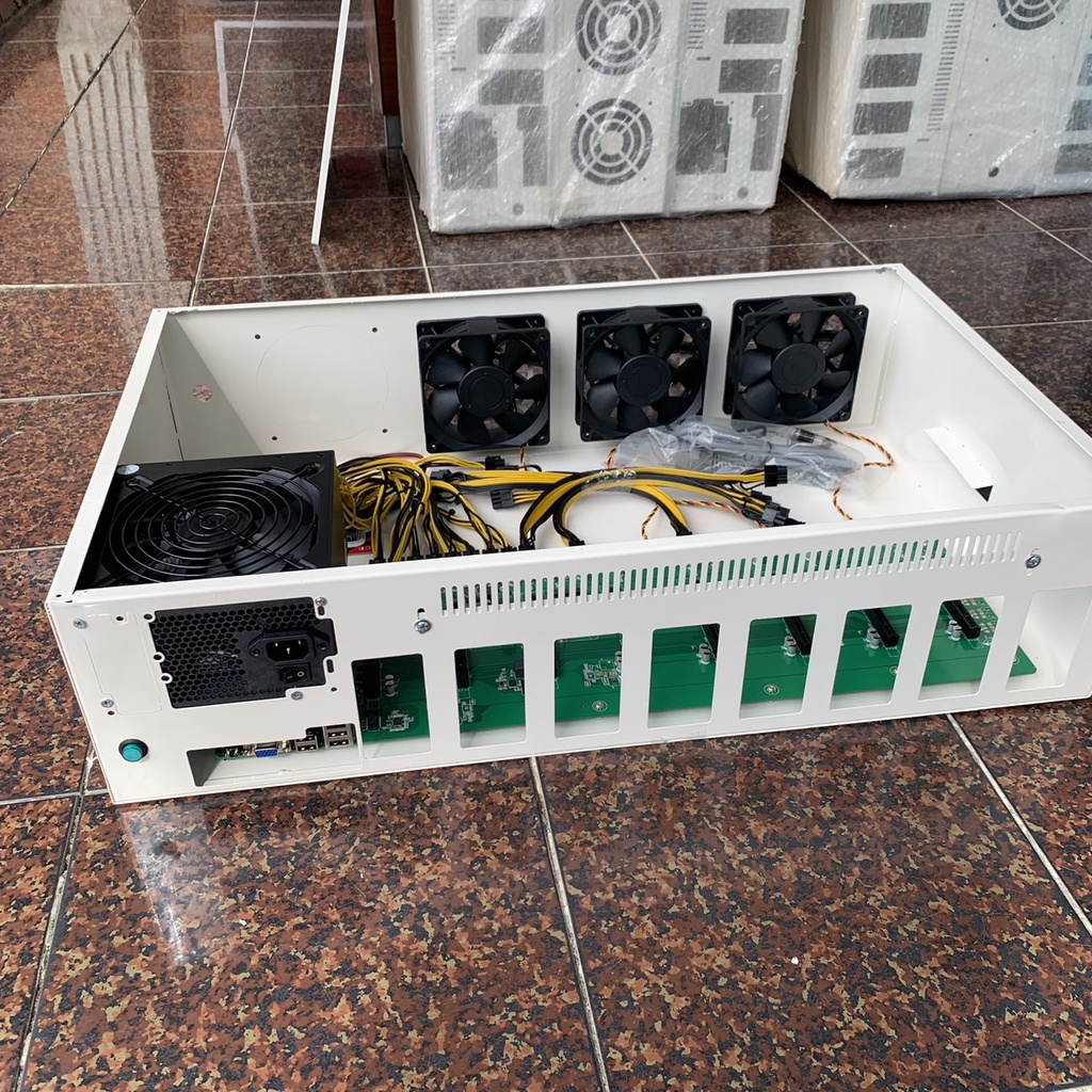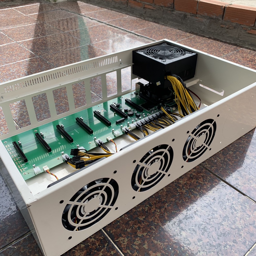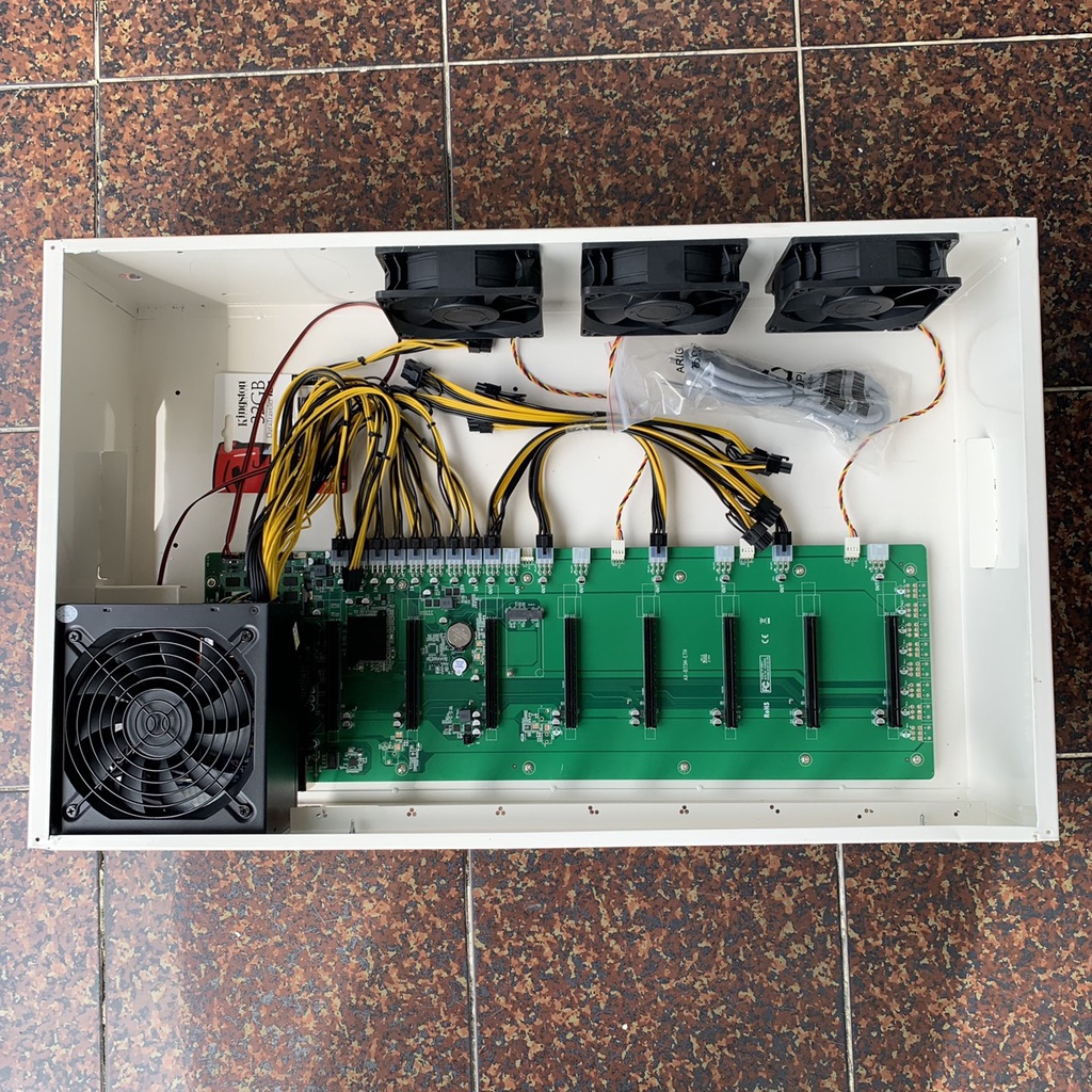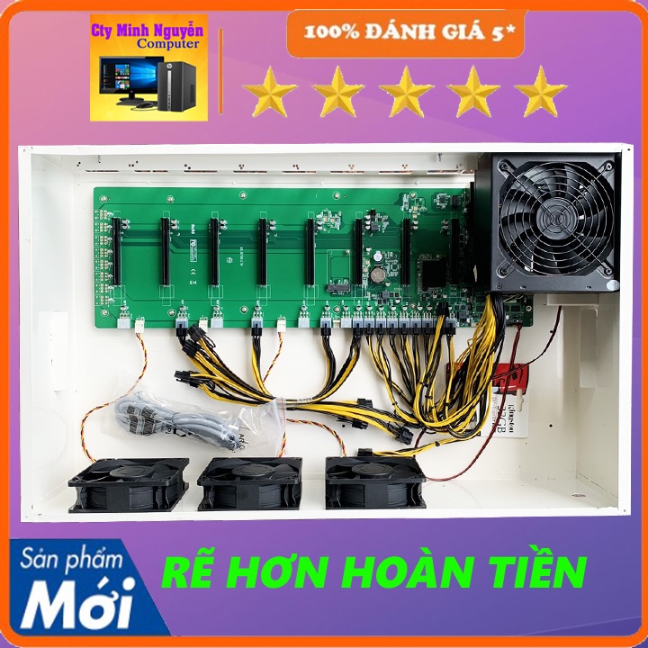 Mua về chỉ việc gắn 8 card màn hình vào là chạy thôi (Case 4u bitcoin, trâu cày, main b75 8 chân, khung máy đào coin eth, ergo, etc, rvn này được nhiều người đánh giá là tốt và chất lượng)