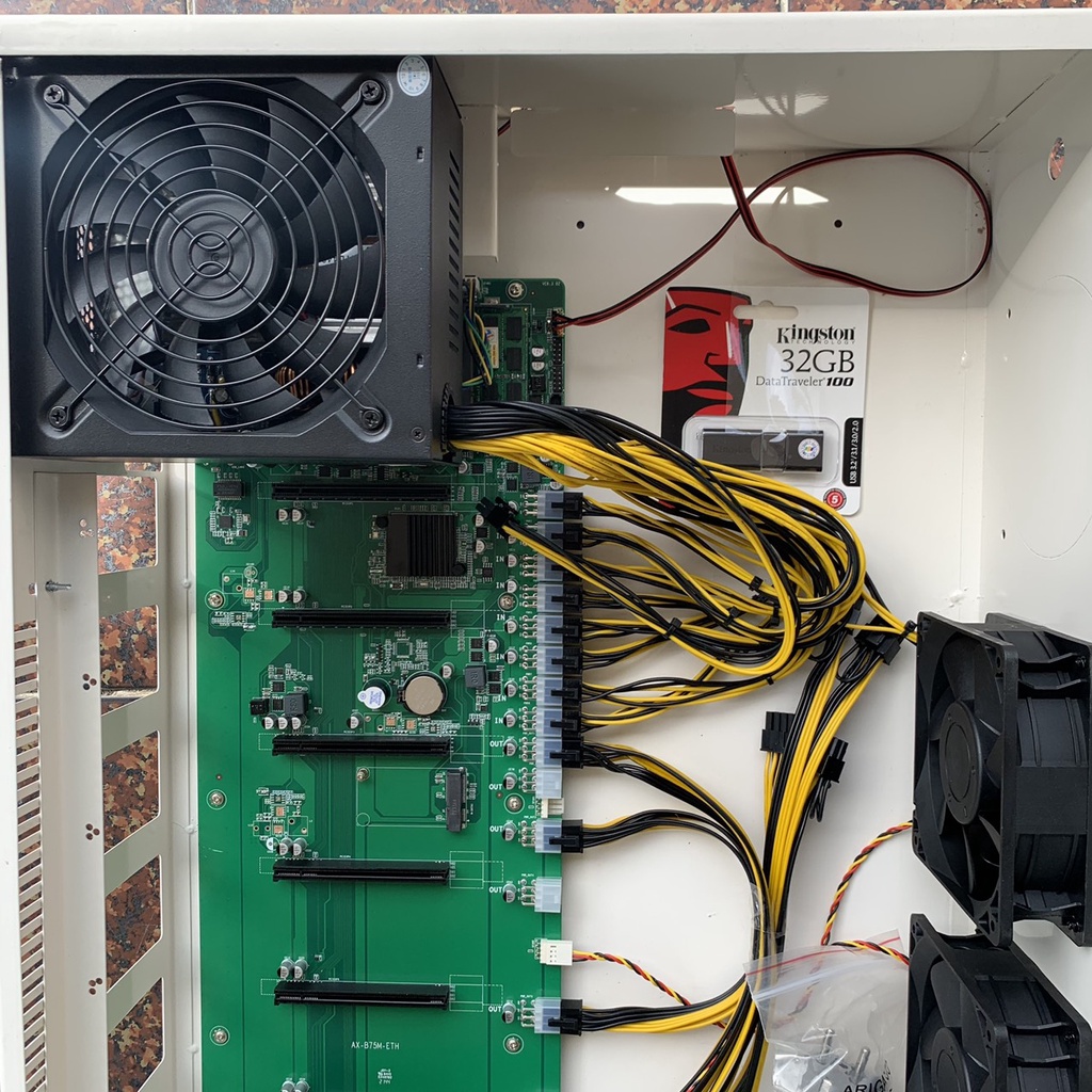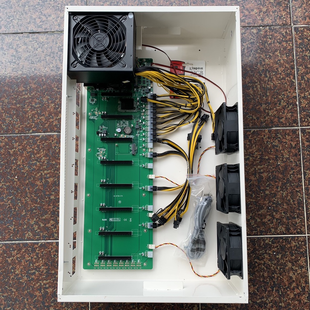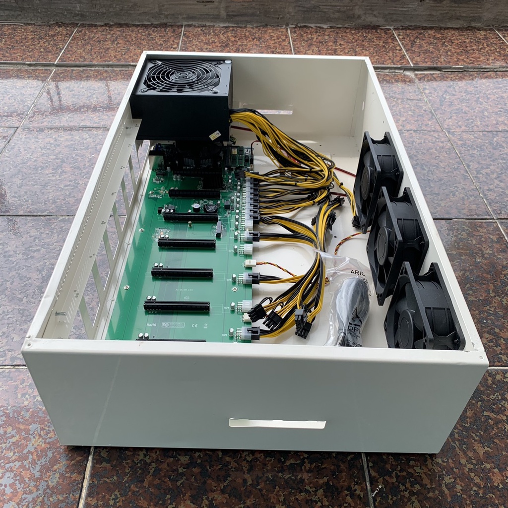 Mua về chỉ việc gắn 8 card màn hình vào là chạy thôi (Case 4u bitcoin, trâu cày, main b75 8 chân, khung máy đào coin eth, ergo, etc, rvn này được nhiều người đánh giá là tốt và chất lượng)