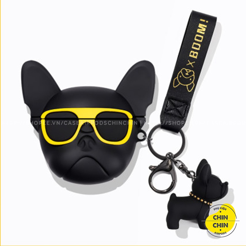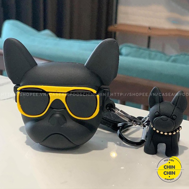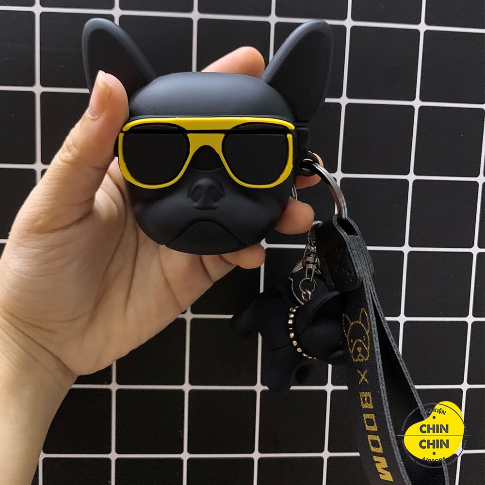 Combo Case Vỏ Bọc Airpod Đựng Tai Nghe Airpods 1 2 Pro Chó Bull Kính Vàng Kèm Móc Khóa Cực Chất - Chin Chin Shop