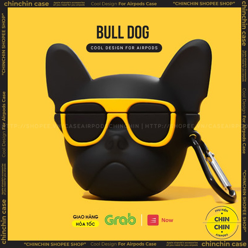Giới thiệu Combo Case Vỏ Bọc Airpod Đựng Tai Nghe Airpods 1 2 Pro Chó Bull Kính Vàng Kèm Móc Khóa Cực Chất - Chin Chin Shop