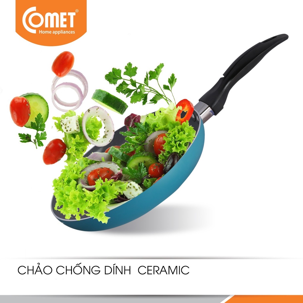 - Chảo ceramic 02 lớp chống dính thương hiệu COMET là món quà thiết thực cho các bà nội trợ, giúp việc nấu nướng thuận lợi và có nhiều lựa chọn hơn, phù hợp với mọi không gian bếp.