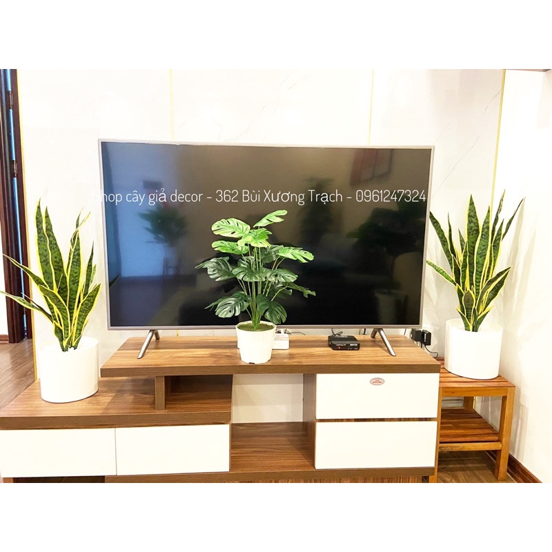 cây lên chậu 55cm . chậu nhựa giả sứ