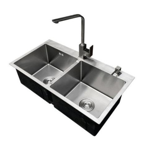 * Bộ sản phẩm bao gồm: 01 chậu rửa chén + 01 bộ ống thoát xả chống hôi + 01 vòi rửa chén nóng lạnh vuông hộp + tặng kèm cặp dây cấp inox nóng lạnh