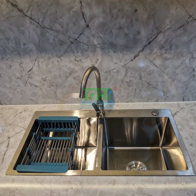 -Sản phẩm 100% inox SUS 304 được đúc nguyên khối, không han gỉ, chậu dày, mặt dàu