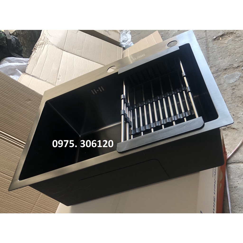 Combo Chậu Rửa Chén Bát CAO CẤP PHỦ NANO CHỐNG TRẦY XƯỚC N17 6045 và Rổ Rút Đa Năng đựng trái cây và bộ xả chậu