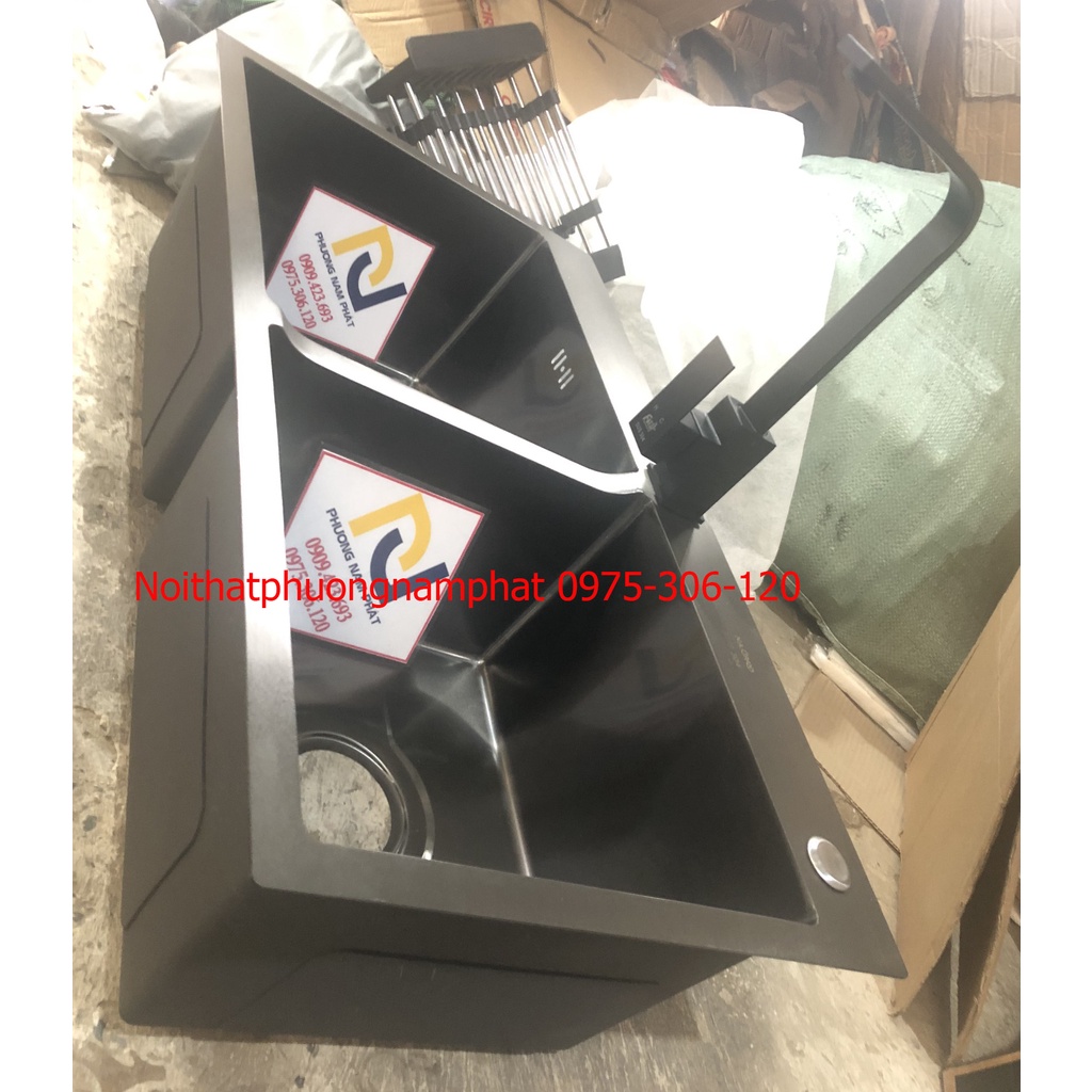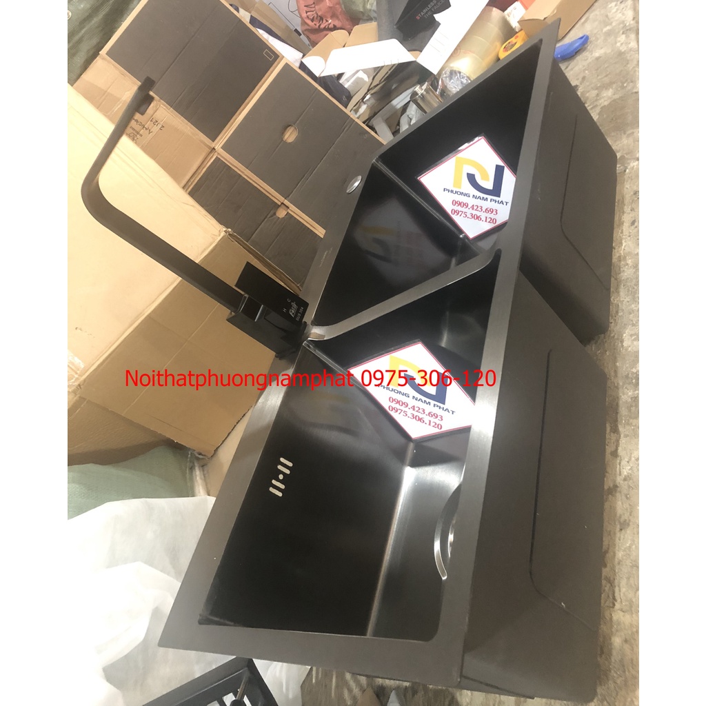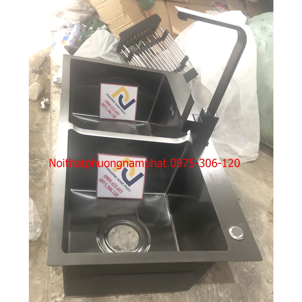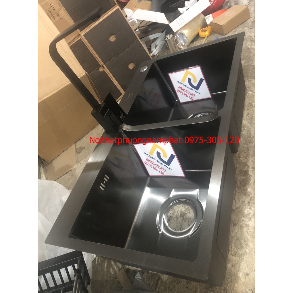 KHÁCH LƯU Ý: TẤT CẢ CÁC SẢN PHẨM CỦA CÔNG TY ĐỀU KHẮC THƯƠNG HIỆU TRÊN SẢN PHẨM, VÀ LUÔN CÓ HÌNH THẬT,Chậu inox sus 304 phủ nano đen, lớp phủ dày 5 lớp, chống trầy, chống bẩn, không bị han gỉ