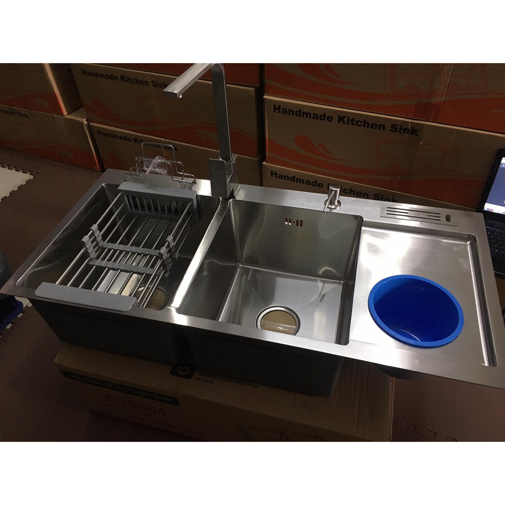 Combo Chậu Rửa Chén Đúc Inox 304 Kích Thước 1000x480 ,Vòi Rửa Chén,Rổ Đa Năng, Bình Xà Phòng