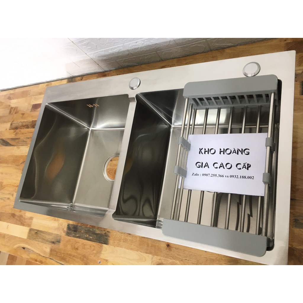 + Combo Chậu Rửa Chén Bát INOX SUS 304 Cao Cấp N5 8245 tặng Rổ Rút Đa Năng đựng trái cây thực phẩm