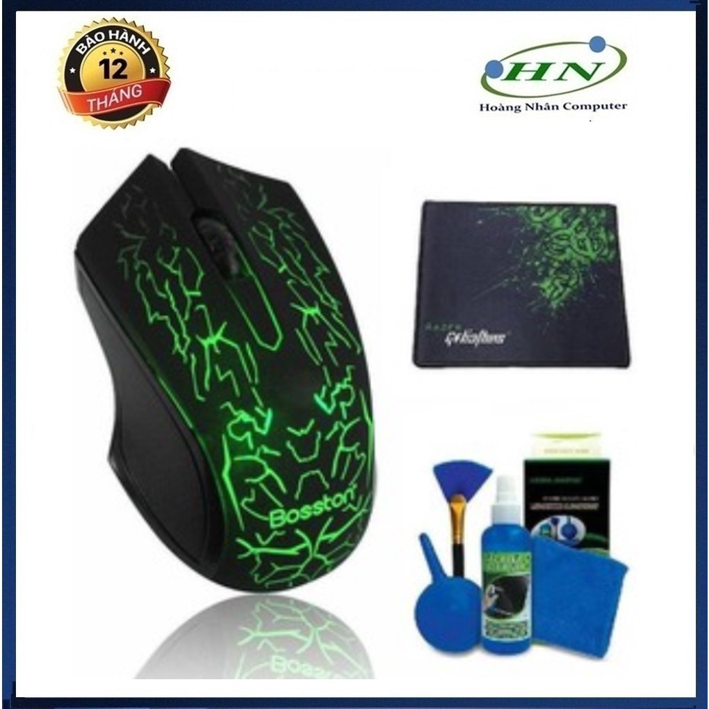 Combo Chuột Game Bosston D608 + Tặng Kèm Bộ Vệ Sinh 4 Món & Lót rz