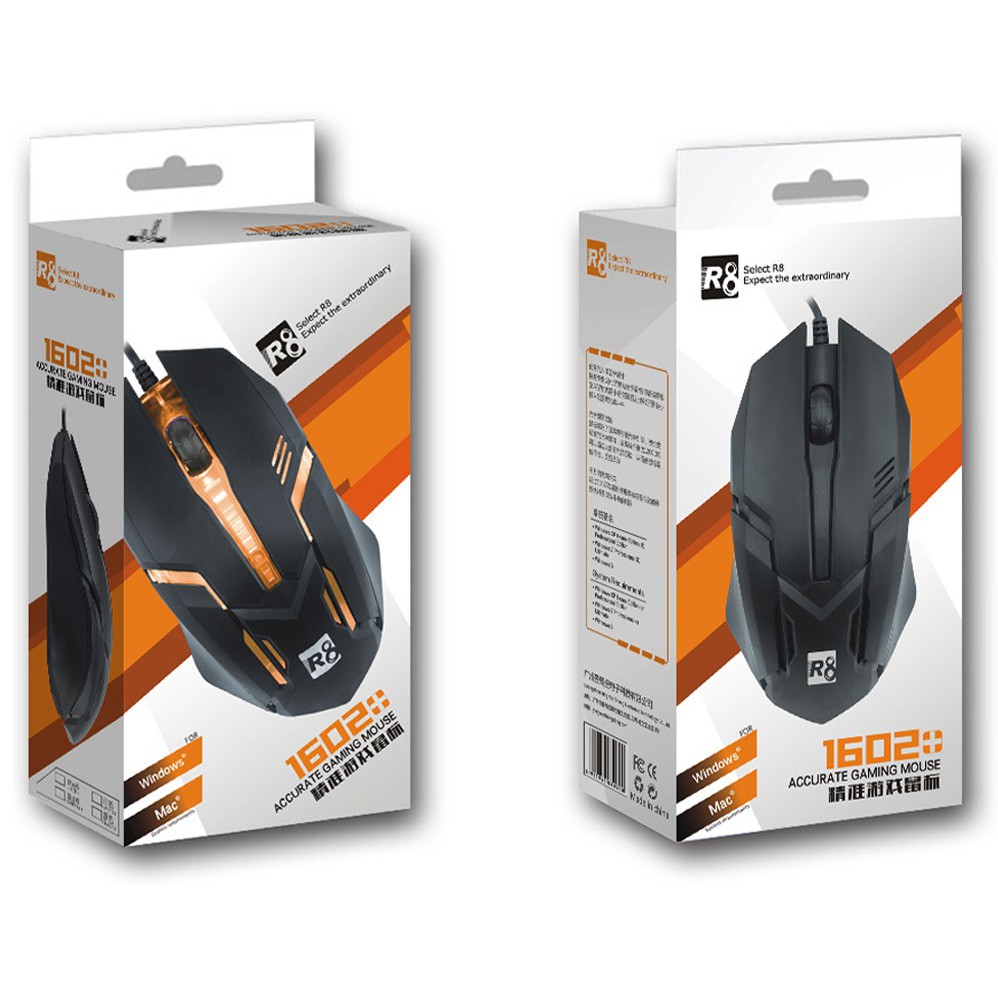 CHUỘT:Chuột Game R8 1602 - Led 7 màu được thiết kế cho các game thủ và giới văn phòng, với độ phân giải 2400DPI, chuột nhạy , có độ bền lên đến 10 triệu lần Click chuột. Đây là dòng chuột chơi game có mức giá bình dân , kiểu dáng đẹp nên rất được ưa chuộng trên thị trường hiện nay.