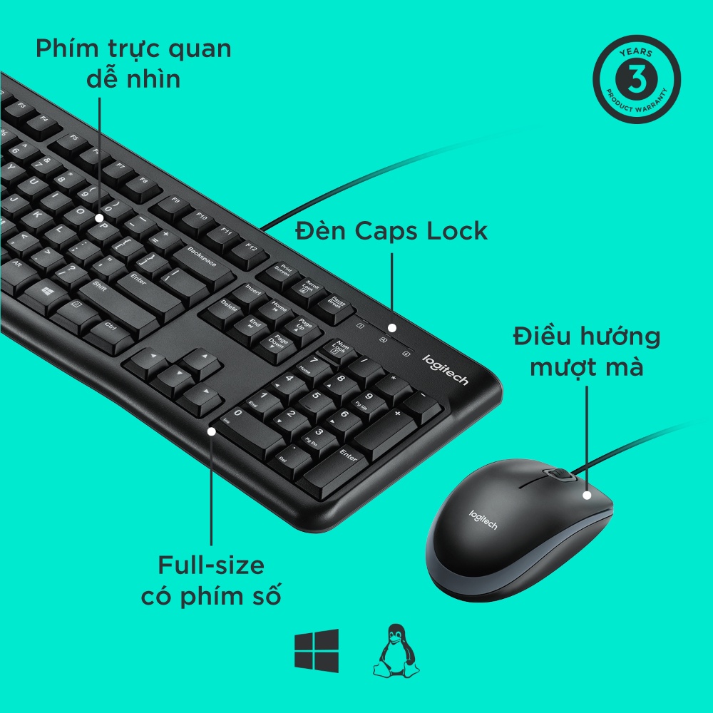 Máy tính & Laptop > Chuột & Bàn Phím > Bàn Phím Máy Tính || Combo chuột phím có dây Logitech MK120 - Fullsize, có phím số, bền bỉ, chống trànCòn hàng