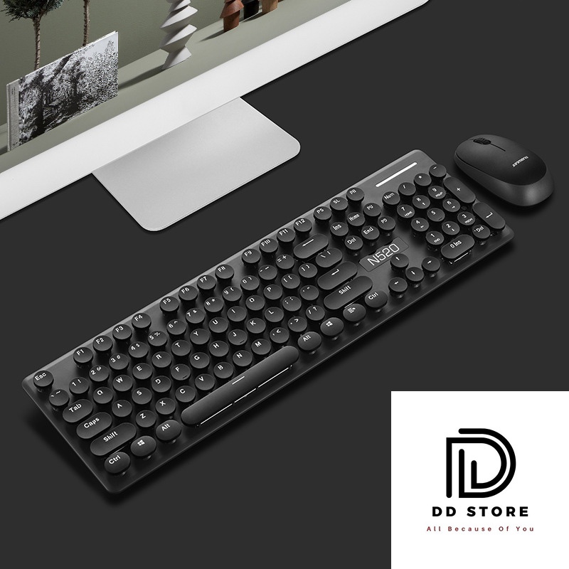 Combo Chuột và Bàn Phím Không Dây Siêu Đẹp N520 Mẫu Cao Cấp Màu Cực Đẹp, Phím Siêu Êm