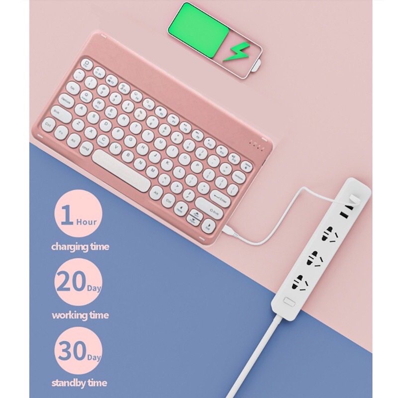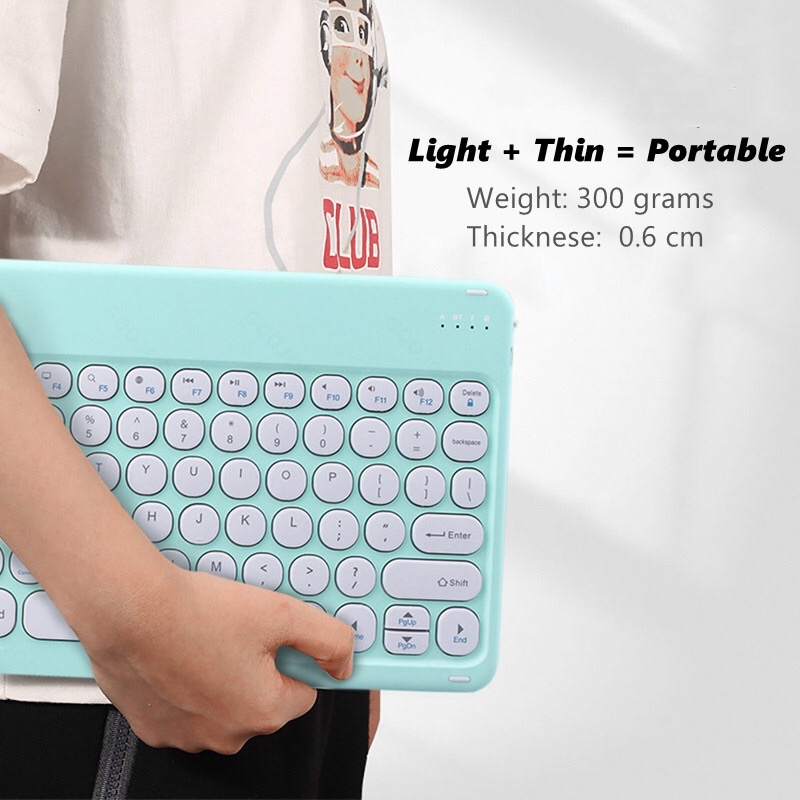 Bàn phím bluetooth không dây siêu mỏng được thiết kế với kích thước vừa vặn dành riêng cho máy tính bảng hoặc sử dụng với máy tính, laptop. Phù hợp cho học sinh, sinh viên hoặc người đi làm có nhu cầu di chuyển nhiều.