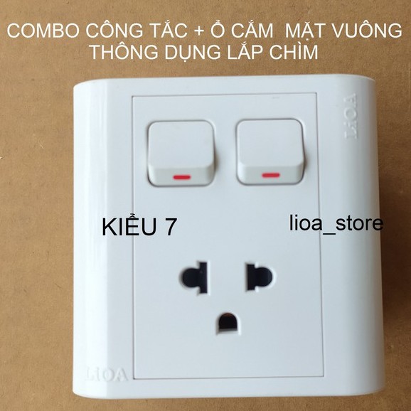 COMBO CÔNG TẮC + Ổ CẮM THÔNG DỤNG MẶT VUÔNG LẮP CHÌM.