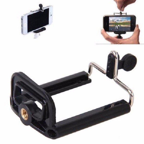 Đầu kẹp điện thoại 2 chiều cho chân máy ảnhGắn kèm cho các loại chân máy ảnh. Phù hợp với hầu hết tất cả các loại điện thoại thông dụng có kích thước từ 4,5 đến 6 inch với độ rộng tối đa tới 8cm