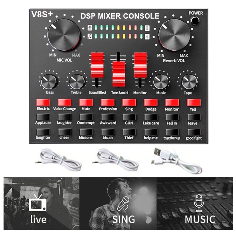 - SIÊU PHẨM COMBO SOUNDCARD V8S+ VÀ MICRO THU ÂM BM900 – THU ÂM HÁT LIVE STREAM, KARAOKE- Sound card V8S+ Bluetooth là sản phẩm card âm thanh kết nối lấy nhạc với nhiều thiết bị như Ti vi điện thoại smartphone, máy tính bảng, laptop, PC. Sound card thu âm V8S+ hỗ trợ16 hiệu ứng âm thanh sống động, đi kèm là rất nhiều tinh chỉnh âm thanh đầu vào, giúp công việc hát karaoke cá nhân hay thu âm của bạn trở nên dễ dàng hơn.