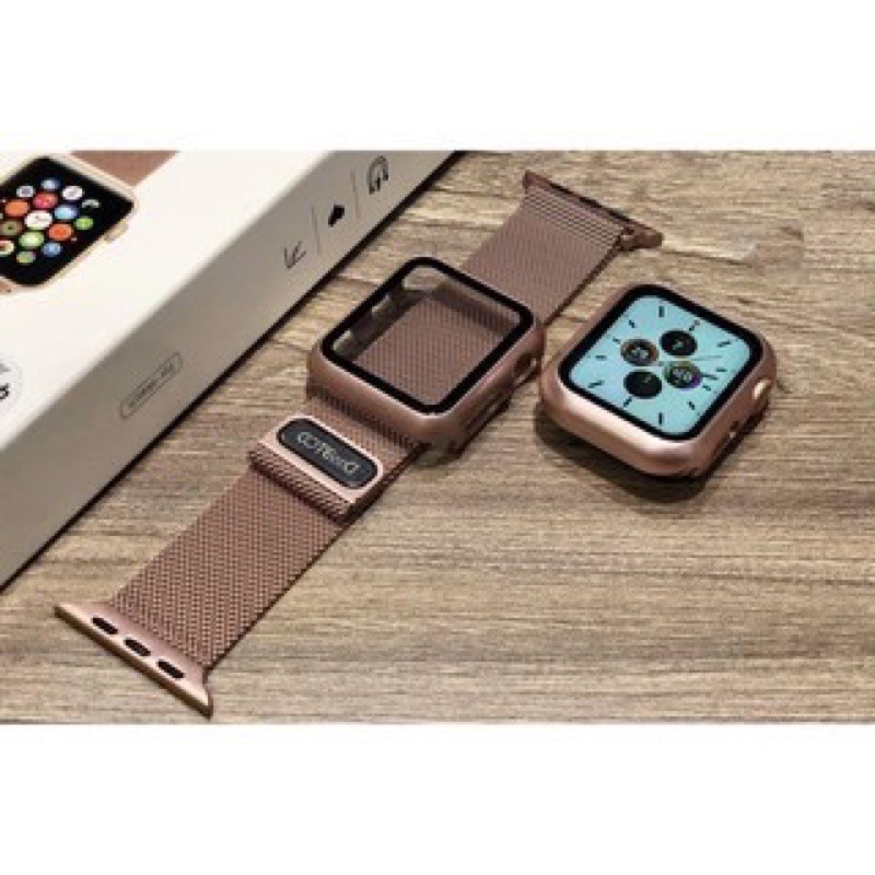 Combo dây thép và Ốp liền kính cường lực cho Apple Watch đồng hồ thông minh iWatch Series1/2/3/4/5/6/SE size 38/40/42/44