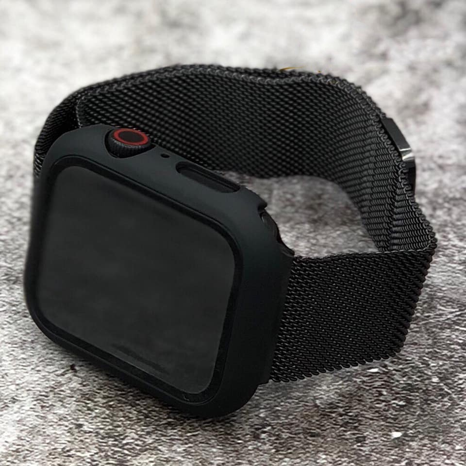Combo dây thép và Ốp liền kính cường lực cho Apple Watch đồng hồ thông minh iWatch Series1/2/3/4/5/6/SE size 38/40/42/44
