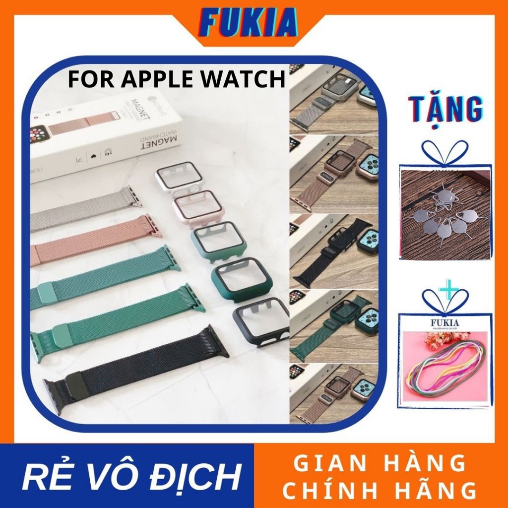 FUKIA cam kết: COMBO dây thép và Ốp liền kính cường lực dành cho Apple Watch đồng hồ thông minh iWatch Series 1/ 2/ 3/ 4/ 5/ 6 38mm 40mm 42mm 44mm