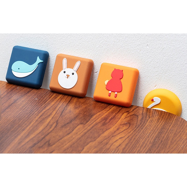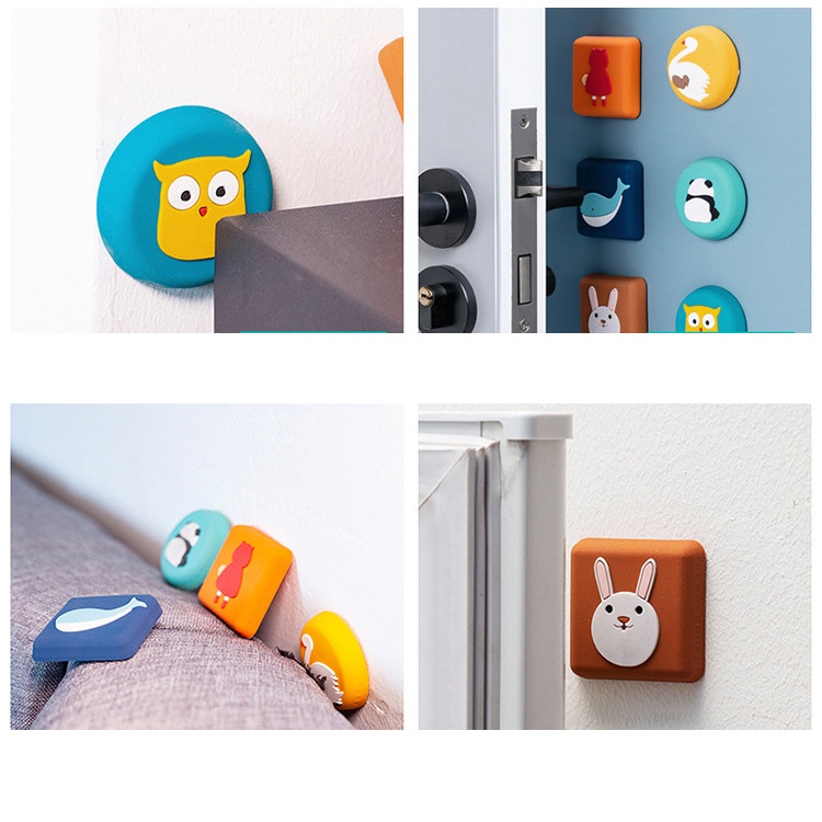 Miếng chặn cửa chống va đập hình thú ngộ nghĩnhThông tin sản phẩm:- Kích thước: 5 cm* 4cm- Chất liệu: Silicon- Giúp xử lý chống đập, tránh gây tiếng động làm trẻ thức giấc.- Bảo vệ tường nhà ngay tay nắm cửa.- Dùng được cho bất kỳ loại cửa nào.- Ngoài ra bạn có thể sử dụng cho các mục đích khác, nhằm tạo khoảng các giữa các vật dụng và tường, hoặc đệm giữa nắp bồn cầu và thùng chứa nước phía sau, tránh gây tiếng động,...