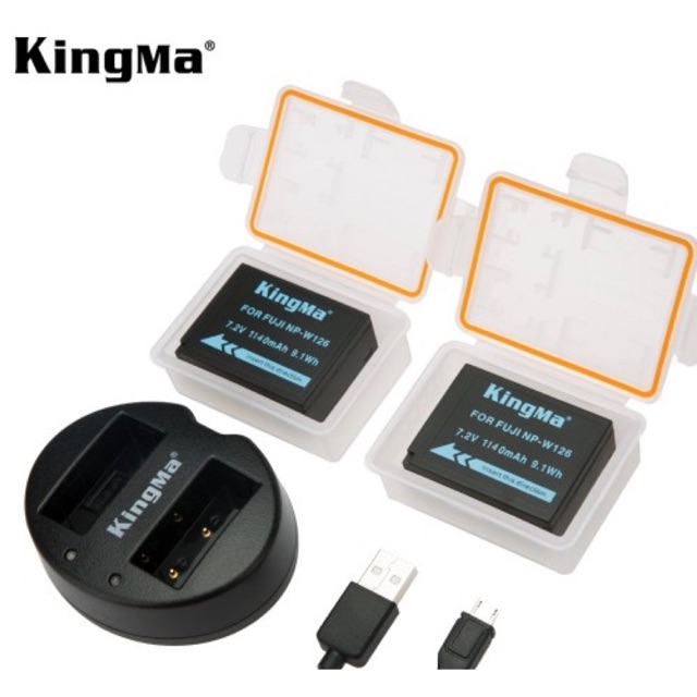 * Pin - Sạc Đôi KingMa Cổng USB Cho Fuji NP-W126 1140mAh sử dụng cho: Fuji FinePix HS30EXR, HS33EXR, HS50EXR, X‐A1, X‐E1, X‐E2,X‐M1, X‐Pro1, X‐T1, X-T10, X-T20, X-T30...