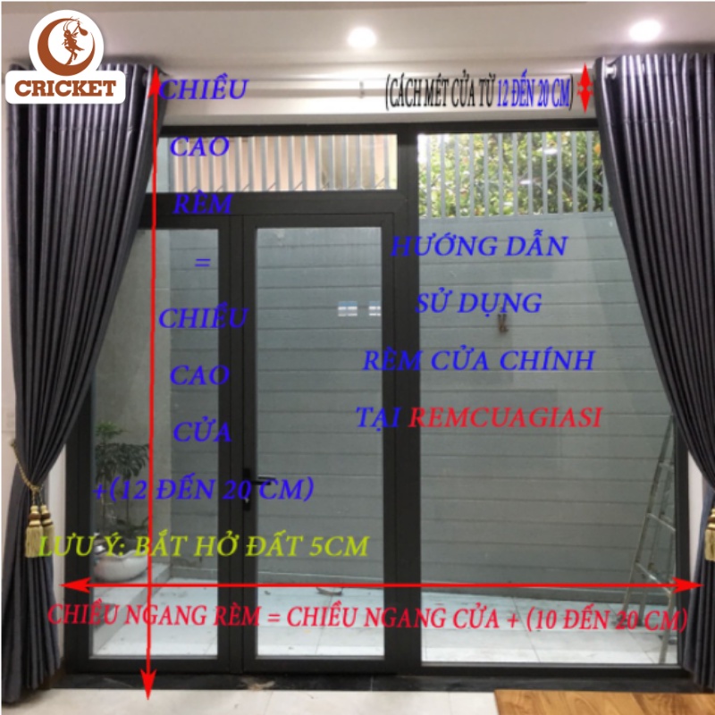 + Đối với cửa chính: Chiều cao rèm cửa= chiều cao lọt lòng cửa + (12 đến 20cm)