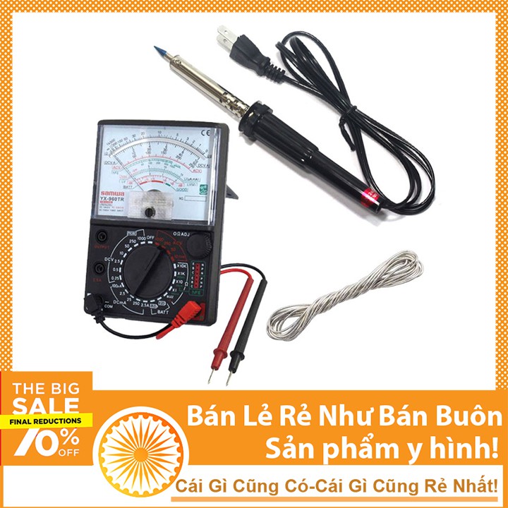Combo Đồng Hồ MULTITESTER DE 960TR + Tay Hàn 60W SOLDERRING IRON + Thiếc Túi Asahi 2m